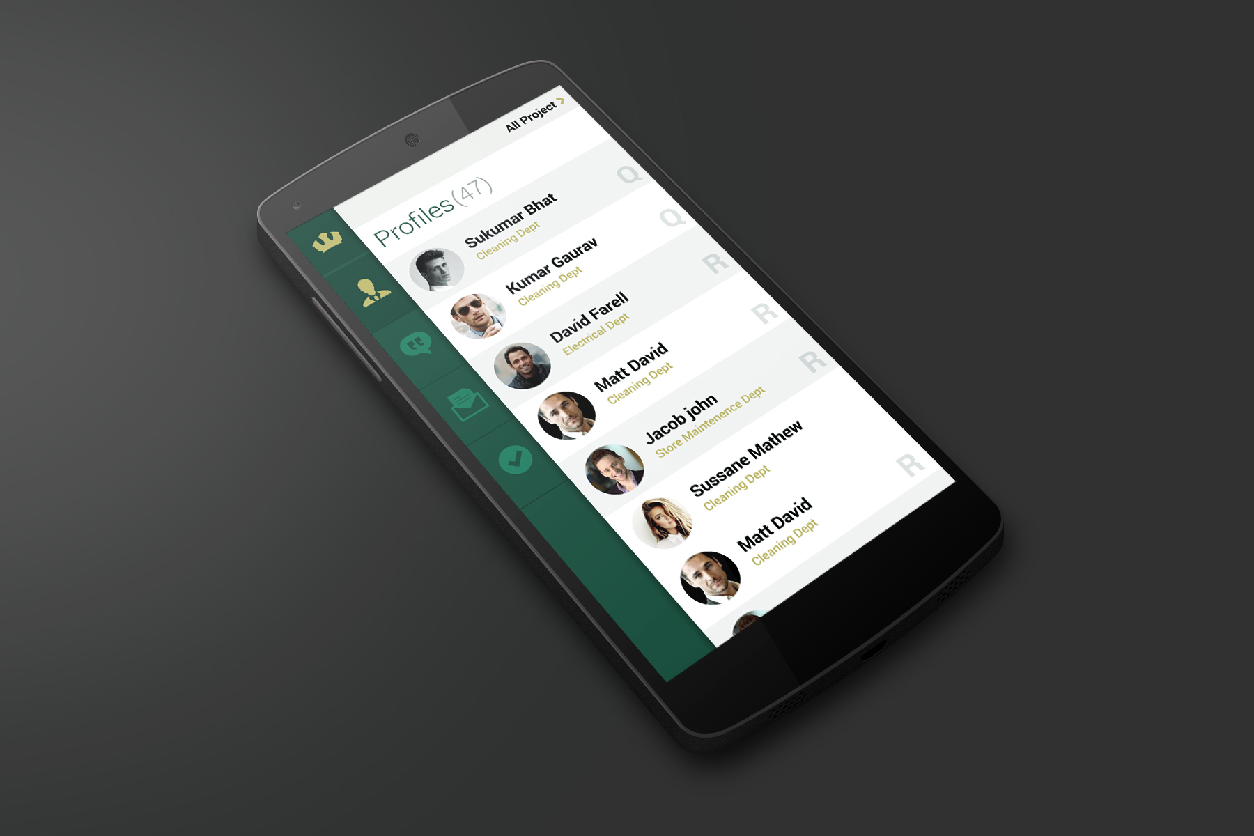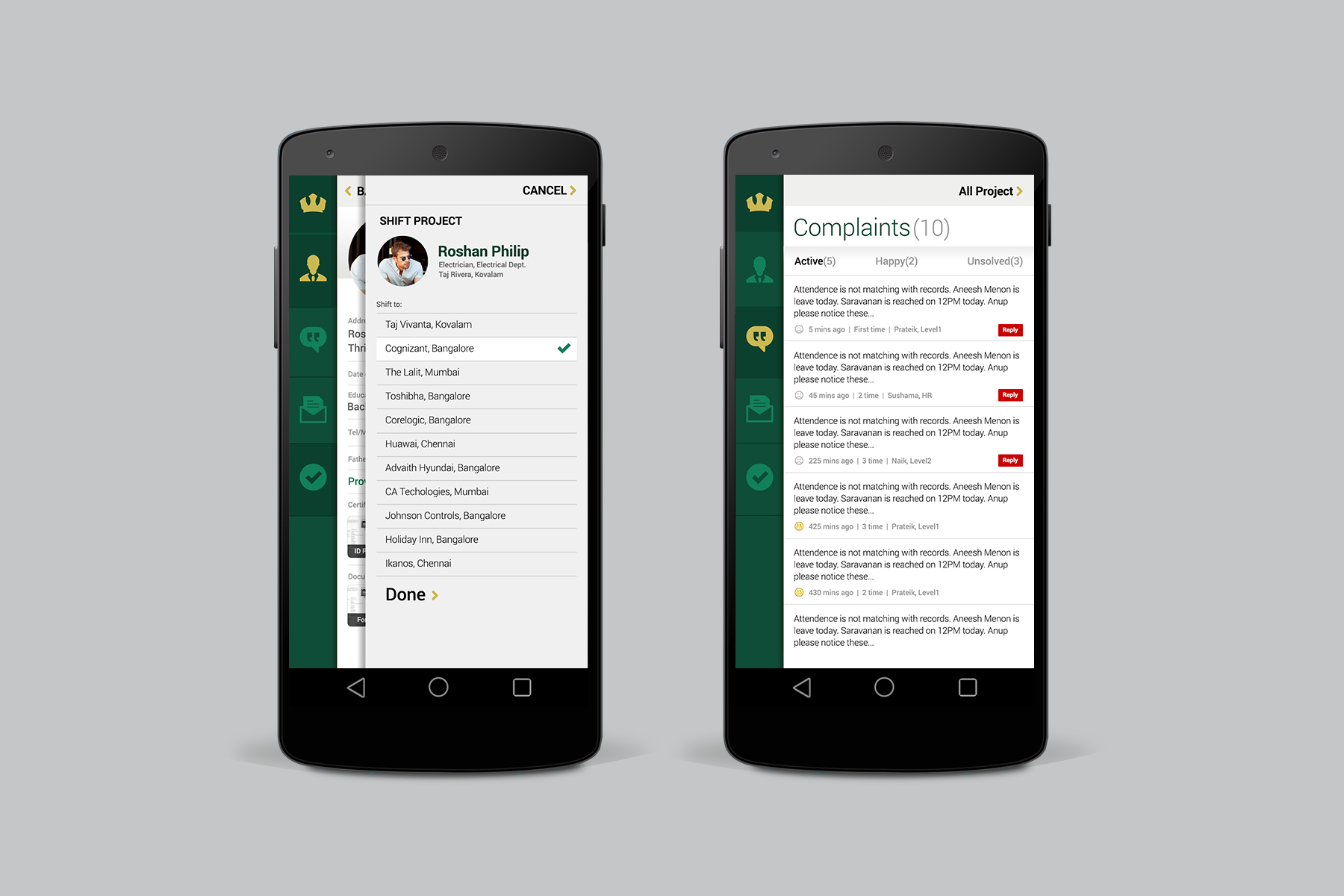 The task at hand was to design a flawless functioning app for their employees with different level of access. The app included a Web version and a Mobile version. While the Mobile version is for project managers and Leads to meet their daily responsibilities, the Web version is for HR & Admin department to access reports of those activities.