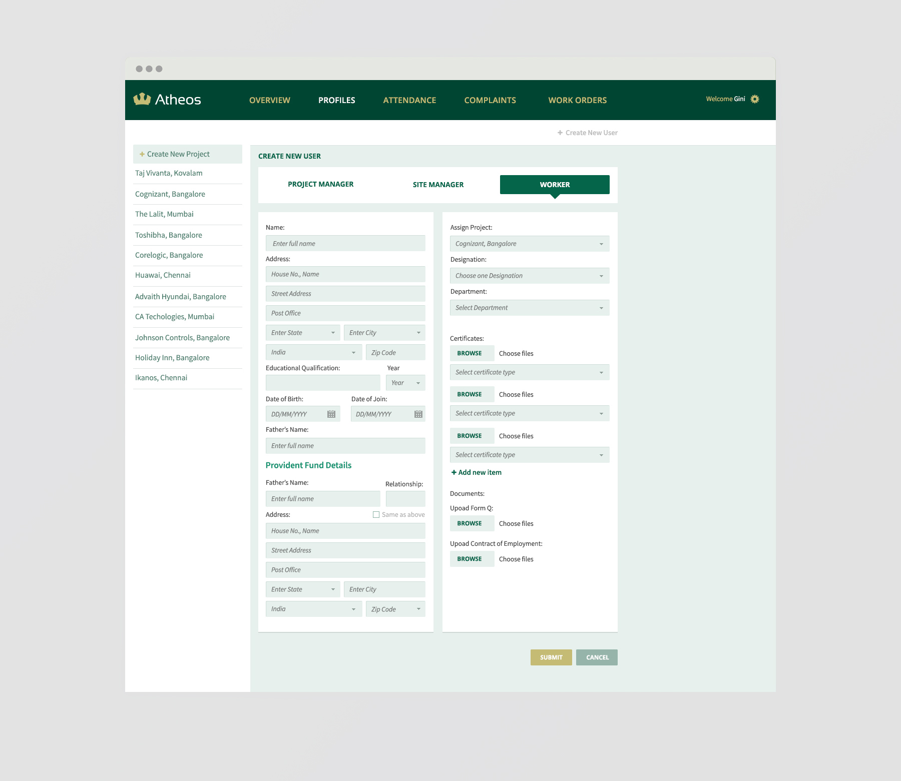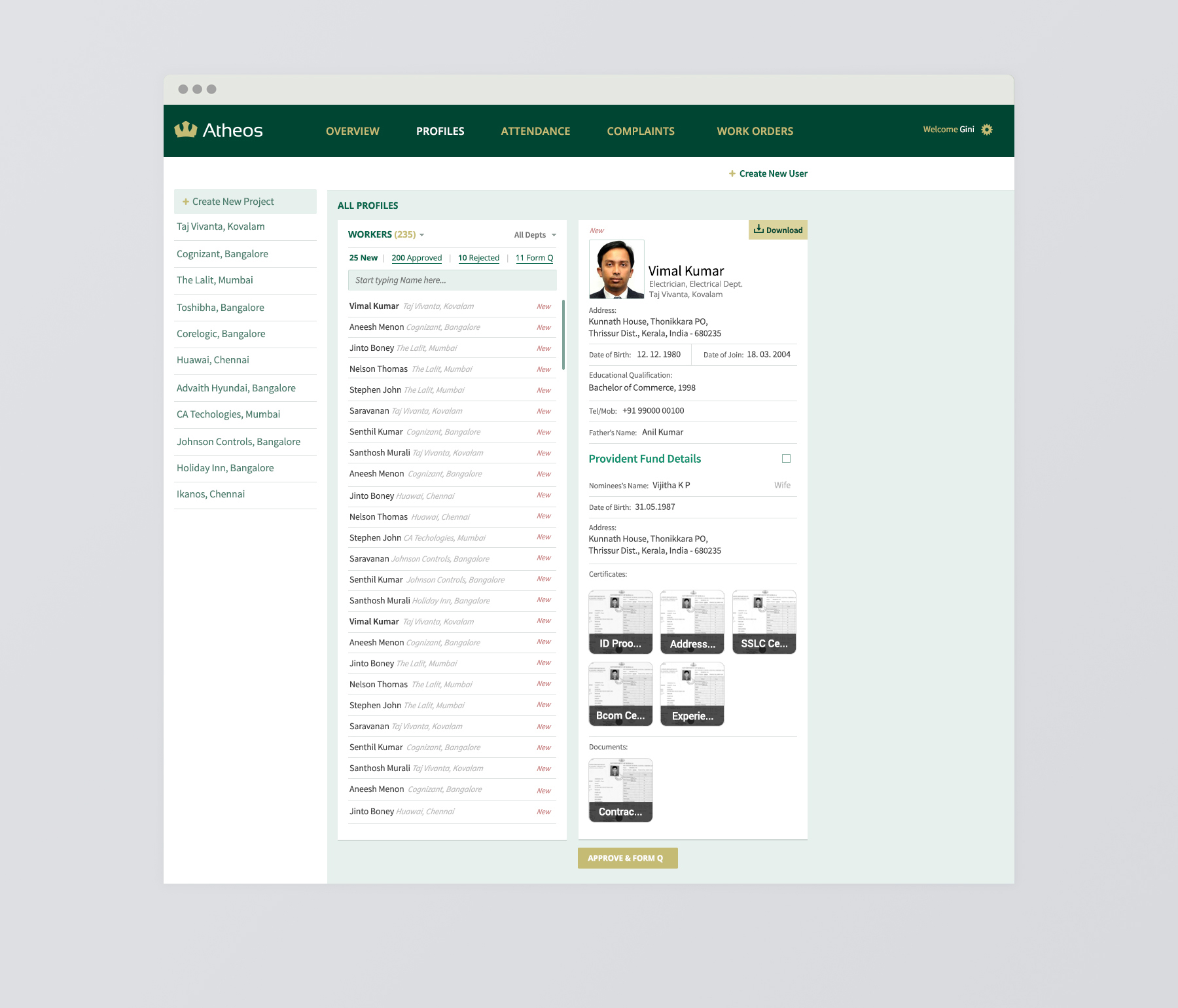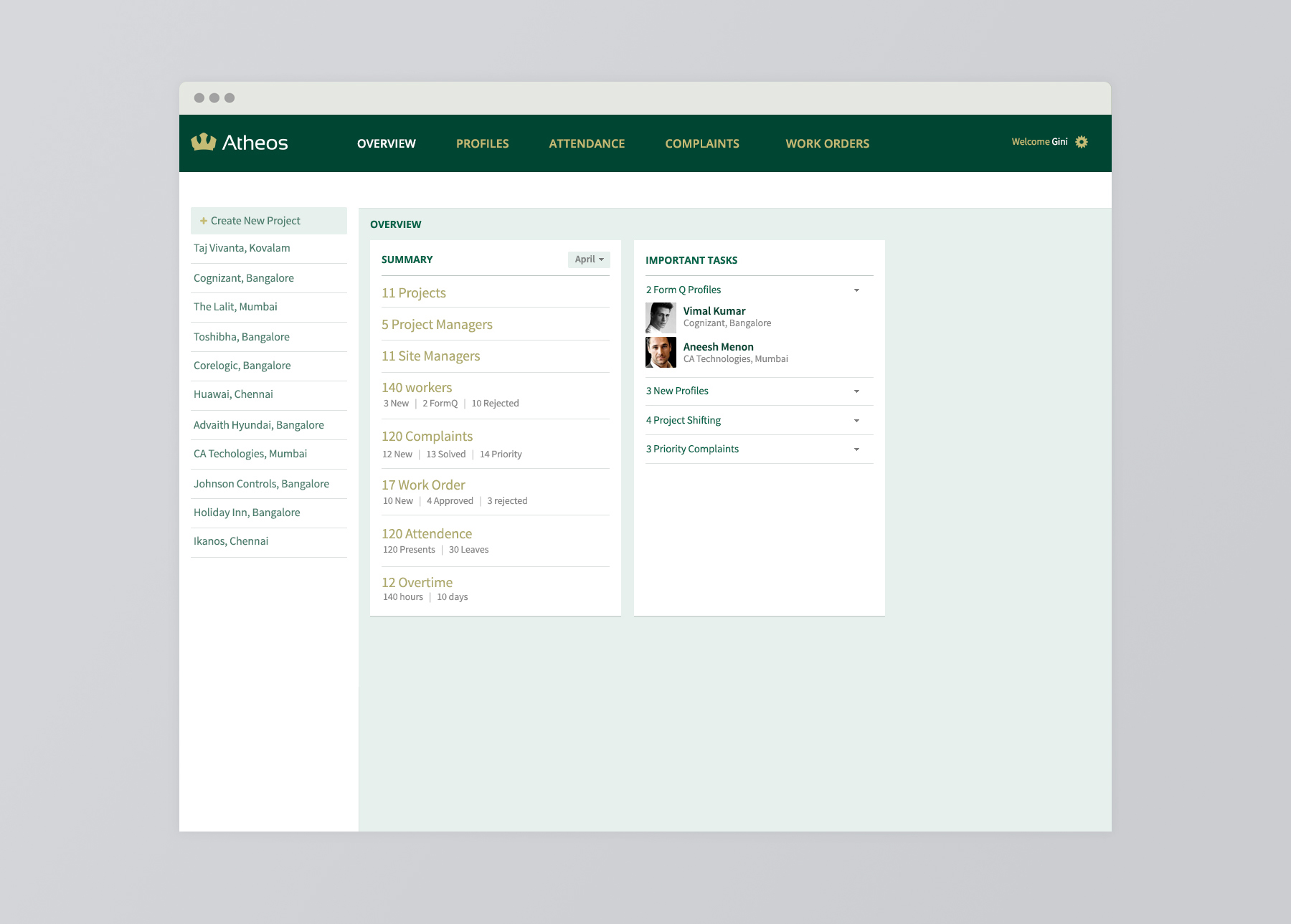 Human Resource Management is one of the most difficult processes of any Infra Solution Company. Even though the people at Atheos were working hard to give the best service possible, they desperately required an automated process for few of their activities like new joining, tracking attendance, complaints etc.