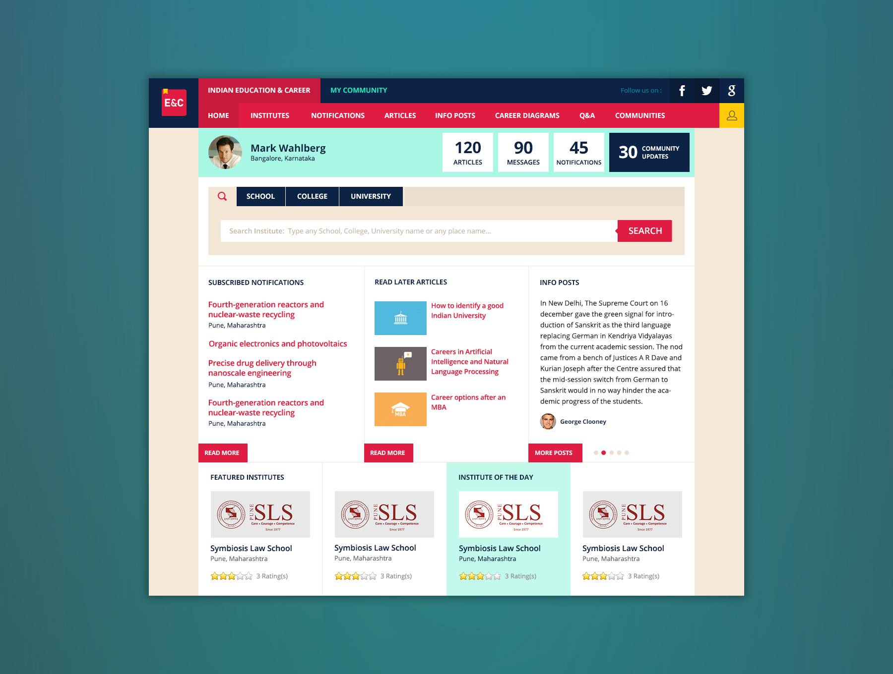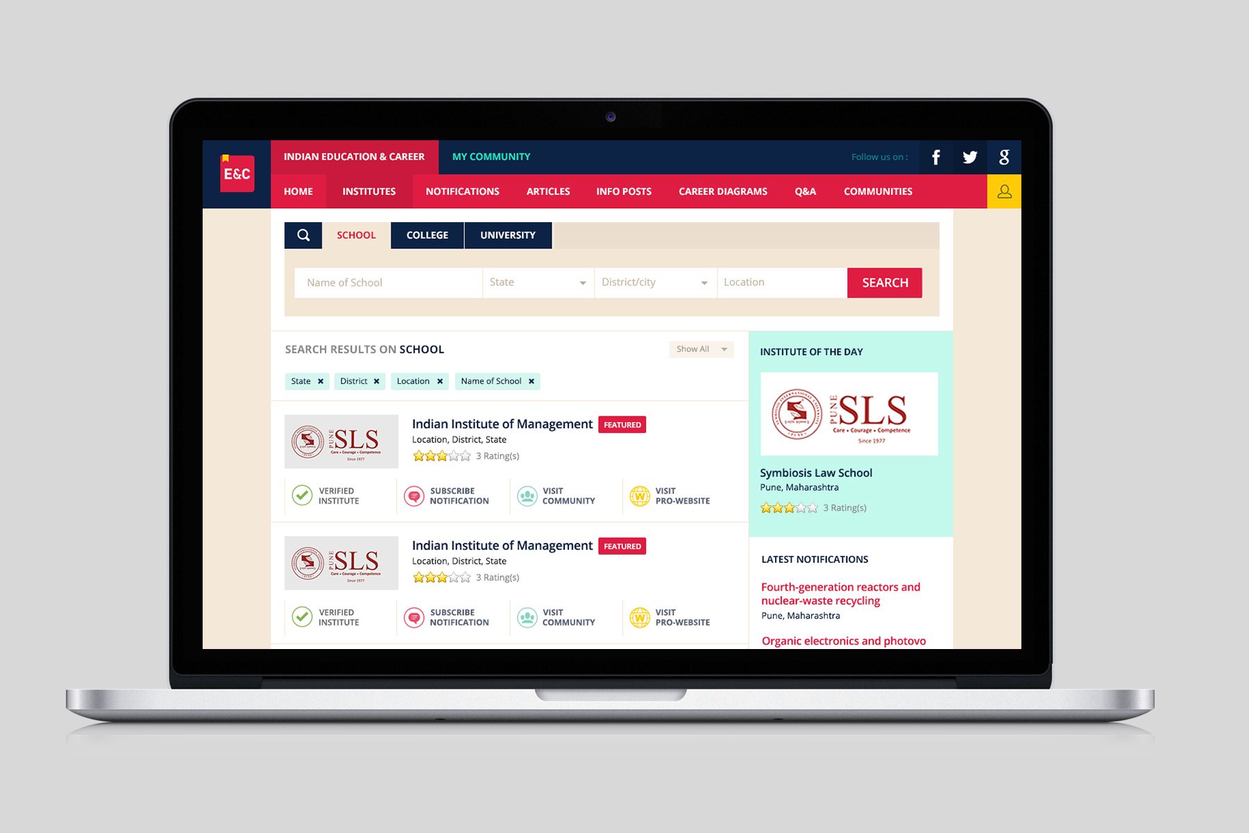 In the version 1.0, we have basic level of information portal with a huge database of institutes. Then we decided to take the portal to the next level which has more complex functionalities like a group (Network) of each institute where students can collaborate with faculties; a public community to showcase their creations and activities etc.